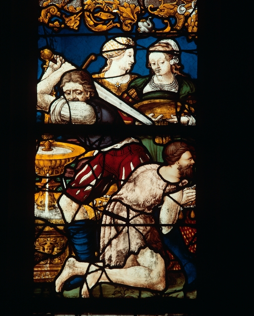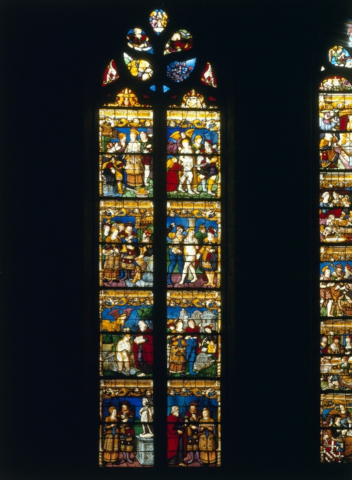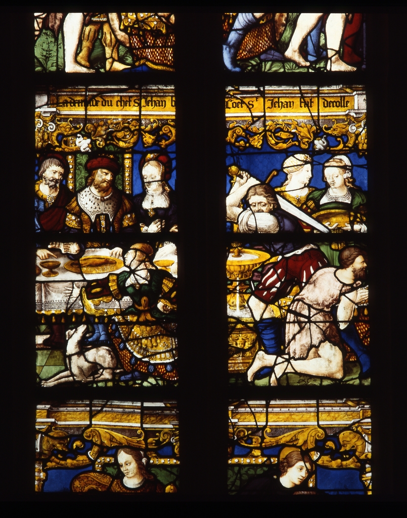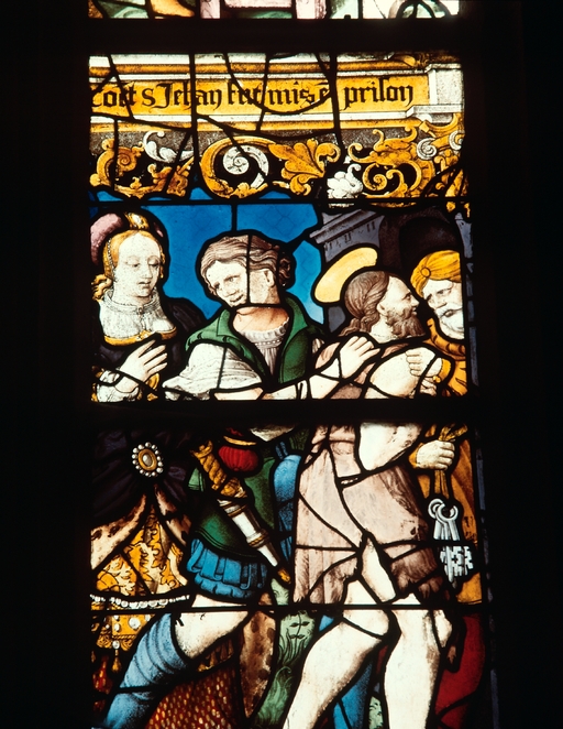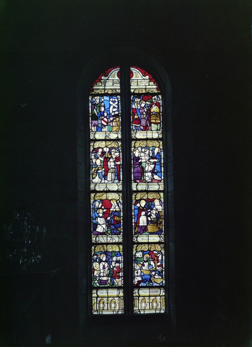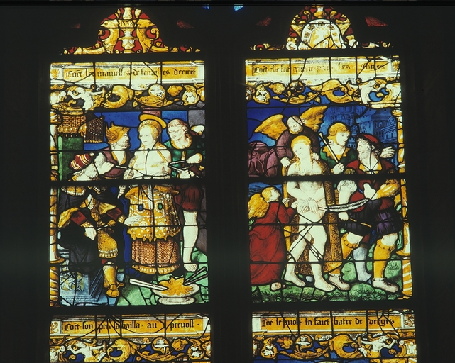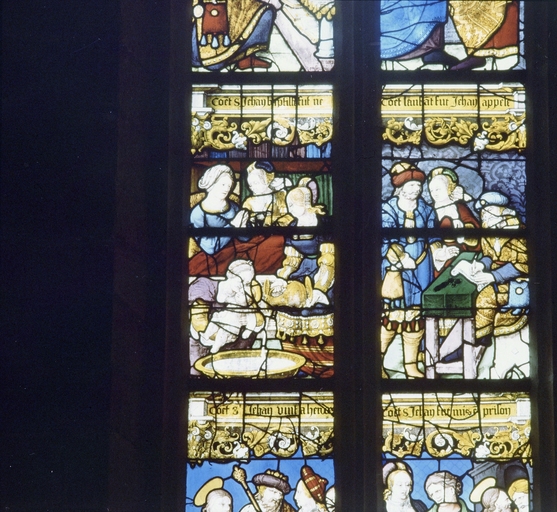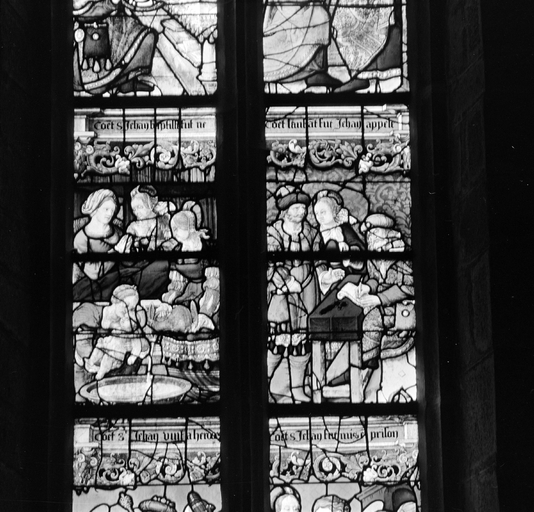 Verrières (6) : légendes de saint Mathurin, sainte Barbe, saint Yves, arbre de Jessé, scènes de la vie de saint Jean-Baptiste et de l'enfance du Christ, église Saint-Mathurin (Moncontour)