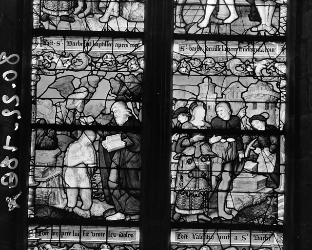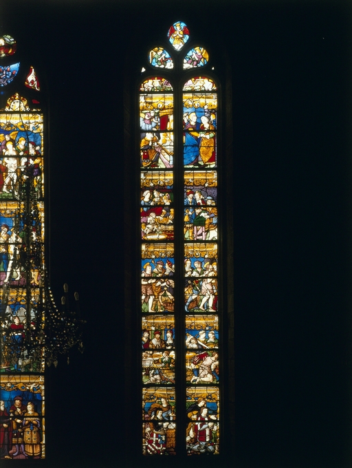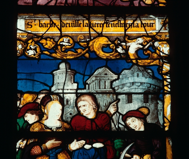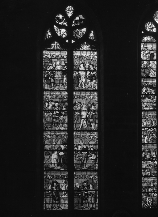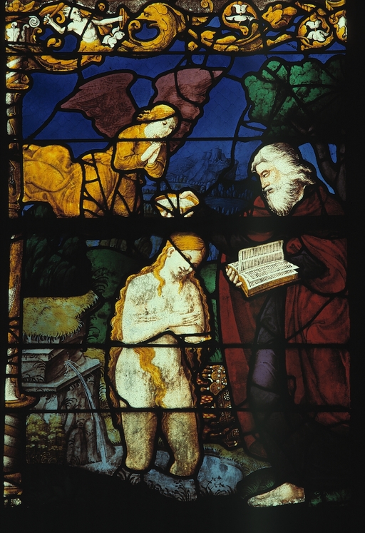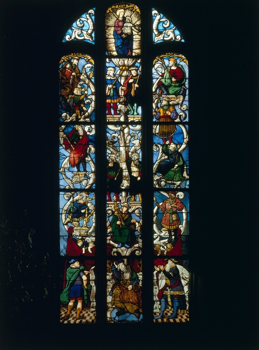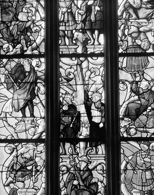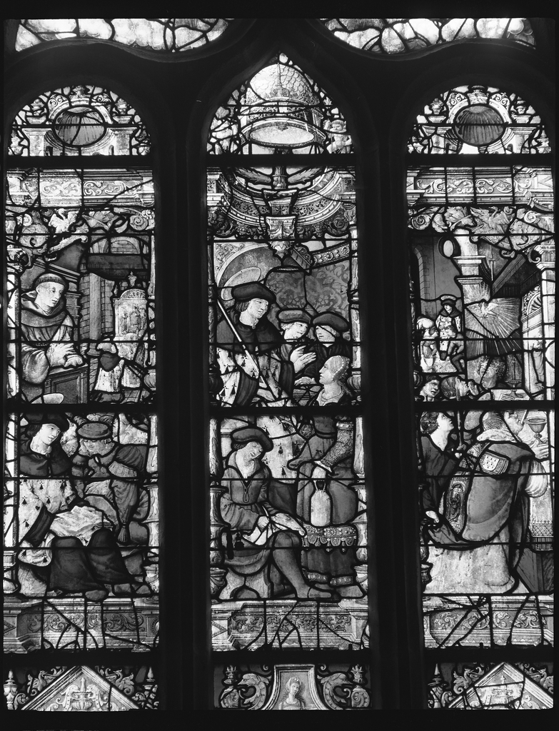 Verrières (6) : légendes de saint Mathurin, sainte Barbe, saint Yves, arbre de Jessé, scènes de la vie de saint Jean-Baptiste et de l'enfance du Christ, église Saint-Mathurin (Moncontour)