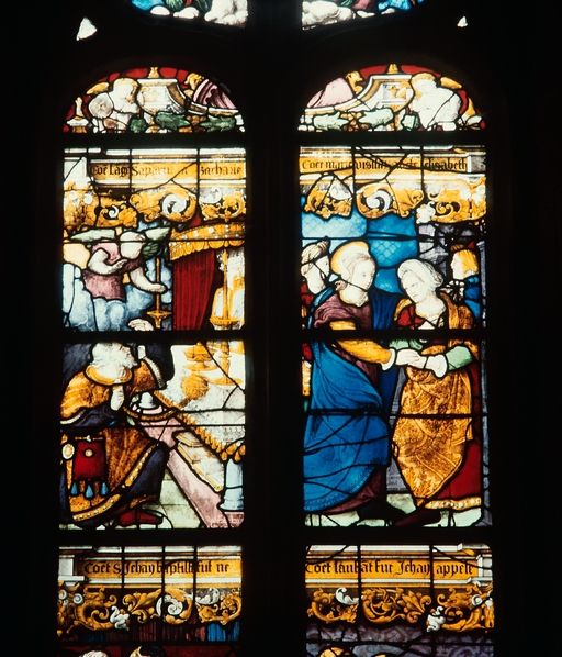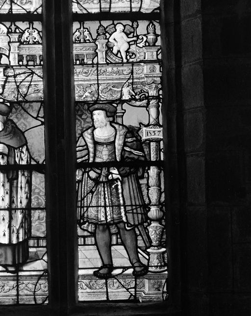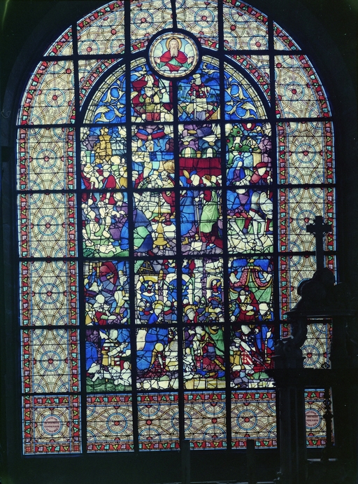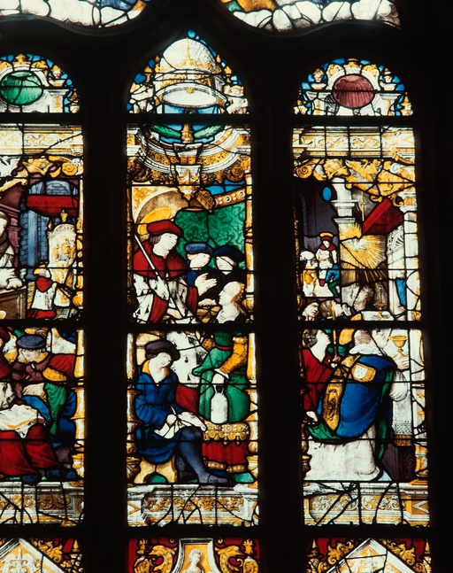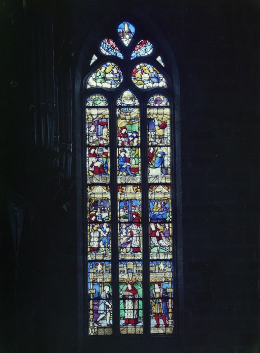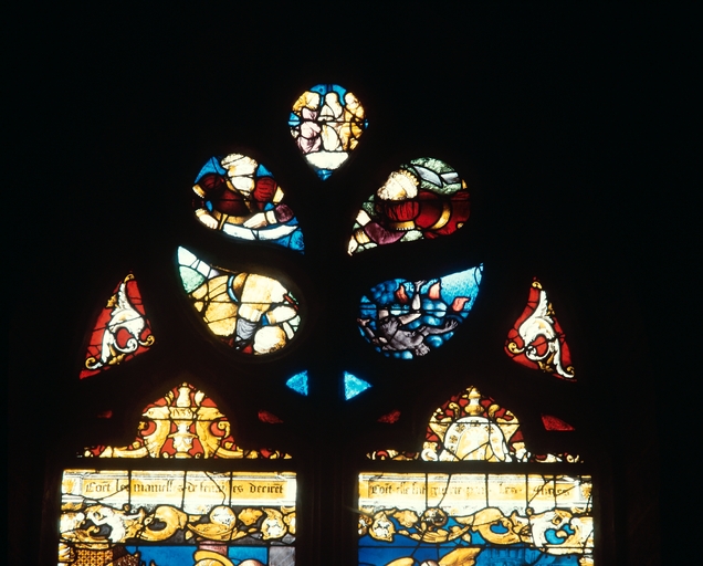 Vitrail de saint Mathurin exécuté en 1520, offert par Jacques de la Motte-Vauclerc. Vitraux de l'Arbre de Jessé, de saint Jean-Baptiste, de sainte Barbe exécutés vers 1538. Vitrail de saint Yves exécuté en 1537. Maîtresse-vitre exécutée entre 1522 et 1531.
