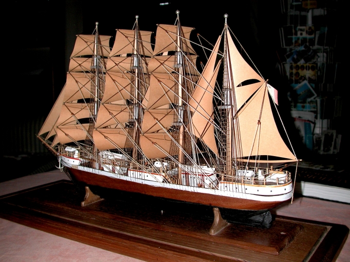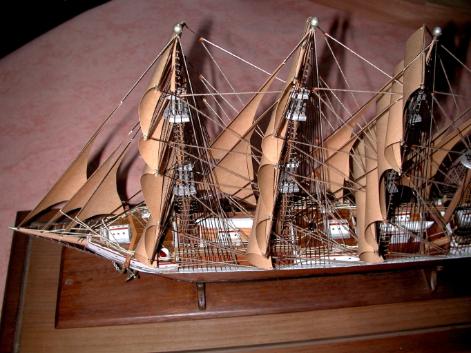 La maquette en bois du navire Cap-Hornier est réalisé en bois dans la masse, sans plan de référence. Elle est gréée de 4 mâts (en bois) avec un gréement courant en textile (cordage synthétique et naturel) et des voiles en tissu synthétique. Elle est présentée sur un support en bois, sous globe. Nous avons repéré mais non étudié une autre maquette, représentant un cargo mixte ravitailleur des Terre-Neuvas en 1914 "Le Lorraine".