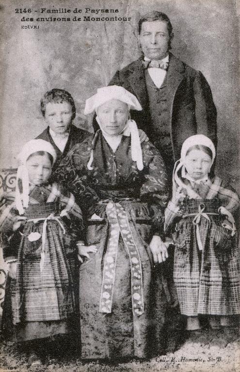 - le groupe Plouguenast (6 communes), où la coiffe est la plus petite alors que le bonnet avec ses jugulaires surtout a beaucoup d'importance. »