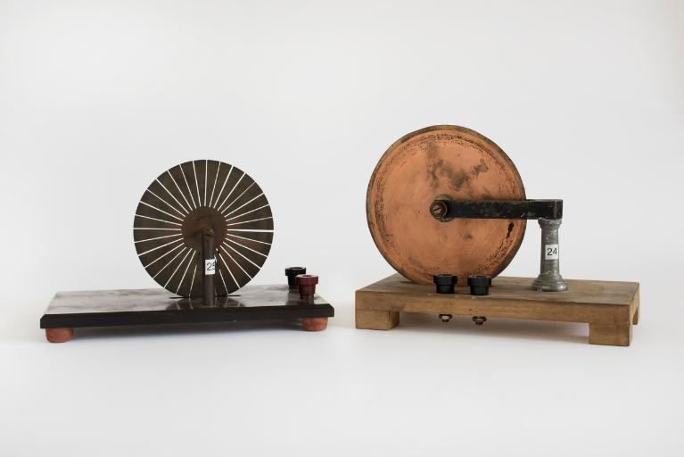 - Une bouteille de Leyde, des déflectrons, un électroscope à feuilles d’or et une machine électrique de Wimshurst pour la discipline électricité statique.