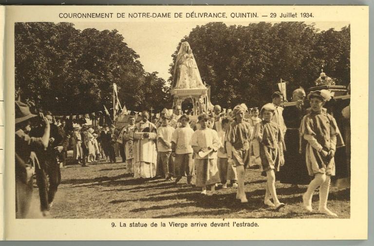 Photographie issue d'un livret portant le titre "29 juillet 1934, Couronnement de Notre-Dame de Délivrance, Quintin (Côtes-du-Nord)", Saint-Etienne, Héliogravure Jean Bernard, Editeur, Imprimerie, 1934