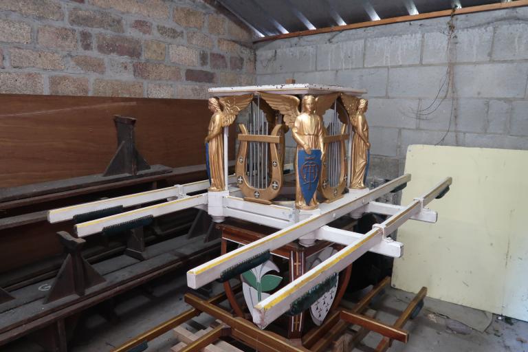 Le brancard aux anges a été utilisé pour porter la statue assise de Notre-Dame de Délivrance, présentée dans le porche ouest, lors de son couronnement en 1934.