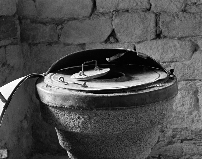 Fonts baptismaux (cuve baptismale à infusion), église paroissiale Saint-Faron (Pouldreuzic),