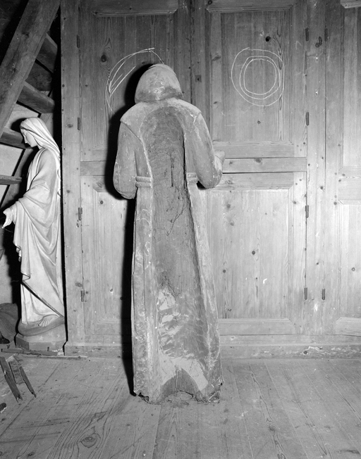 Statue de saint François d'Assise du 18e siècle provenant du même atelier que les statues de saint Mathurin (IM29000356) et de saint Jean-Baptiste (IM29000353) conservées dans l'édifice.