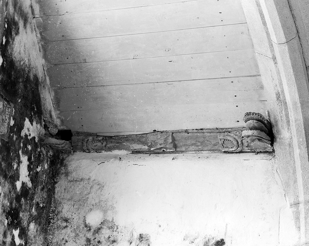 Sablière est : écu à 3 gants d'épervier en pal ; sablière ouest : écu illisible (famille de Rospiec, ?).