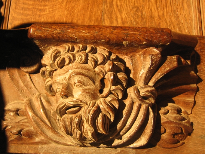 - chêne, taillé, mouluré, ciré, décor en bas-relief, décor en demi-relief