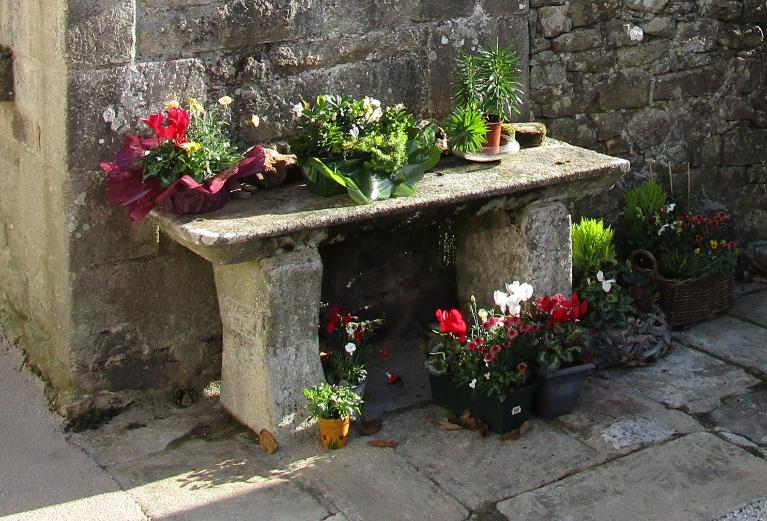 Les pieds disgracieux des meubles étaient cachés par un petit banc qui courrait tout le long de l’alignement. Ce banc propre au Cap-Sizun est dit « bank koste’n ti » (le banc du côté de la maison), bank ar arbeliou (le banc des armoires) ou encore « banc des pauvres » car c’est ici que s’asseyaient, selon plusieurs témoignages, les mendiants invités à partager le repas de la famille.