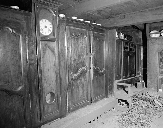 A l’origine, l’un des côtés faisait office de chambre ou de débarras. Il pouvait également être consacré à la vie sociale, l’accueil des hôtes ou simplement au stockage des provisions ou encore à la préparation de la bouillie pour les animaux. Le mobilier y était constitué, à l’instar des chambres de l’étage, de lits-clos et d’armoires, parfois de quelques rares coffres, vestiges d’une époque plus ancienne. Dans l’ensemble assez peu fourni, ce mobilier et son emplacement dans la pièce ne répondait à aucun modèle particulier.