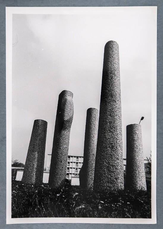 Réunie le 18 avril 1973, la commission agrée le projet de cinq stèles de 2,5 à 3 m de hauteur présenté par François Stahly, tout en se ralliant à "l'avis formulé par les autorités municipales souhaitant qu'elle soit exécutée dans un matériau du pays", en lieu et place d'un travertin de couleur rose.