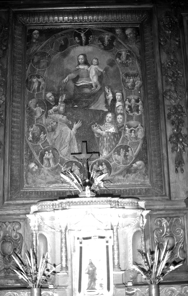 Autel, retable et tabernacle construits vers la fin du 3e quart du 19e siècle ; tableau de la donation du Rosaire peint au milieu du 17e siècle.