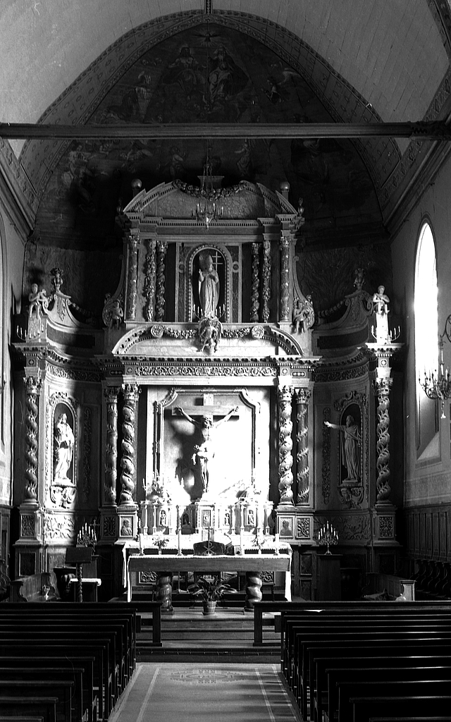Retable, tableau et croix : milieu 18e siècle ; statues saint Pierre, saint Paul et saint Ouen : 19e siècle.
