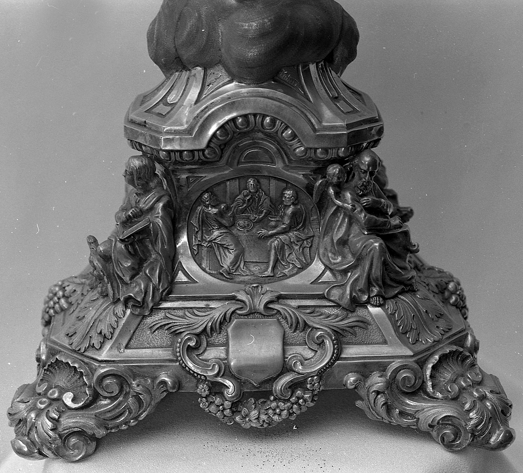 - scène biblique, Pèlerins d'Emmaüs, en médaillon, sur pied, recto