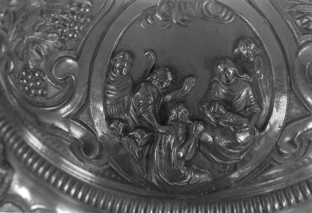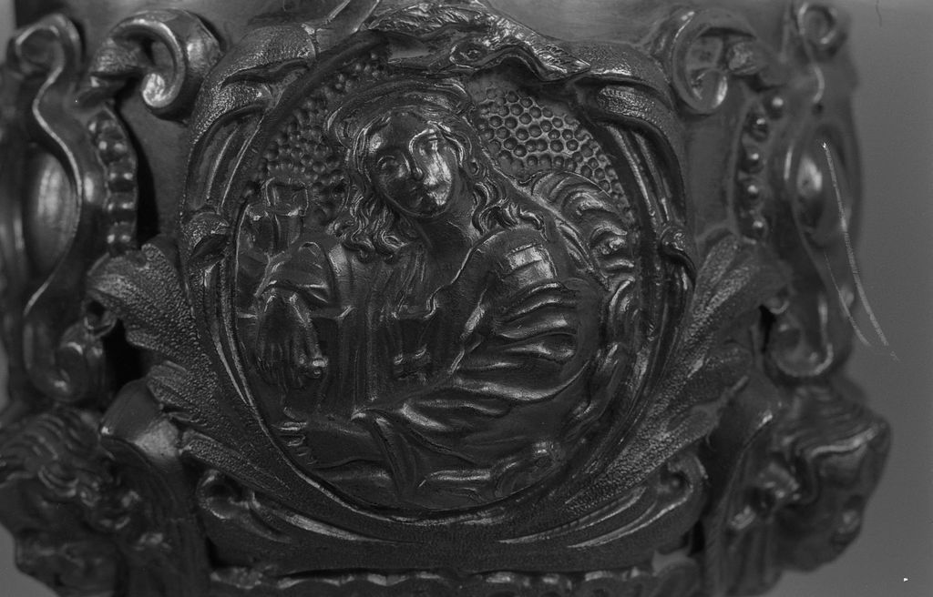 - sur coupe, Enfant Jésus, Vierge, en médaillon saint Jean, saint Joseph