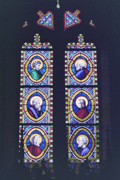 Verrières (2) (vitrail archéologique) : les apôtres (baies 1 et 2), église paroissiale Saint-Pierre, Immaculée-Conception (Mecé),