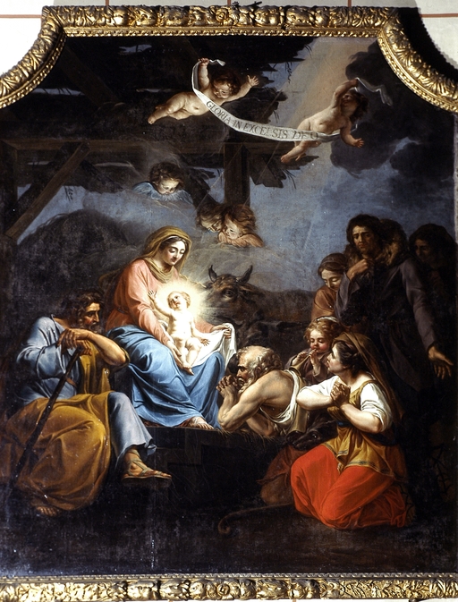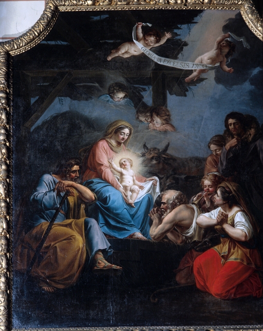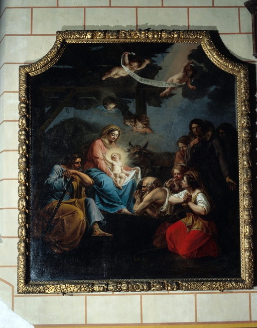 Tableau, cadre : Adoration des bergers, église paroissiale Saint-Pierre, Immaculée-Conception (Mecé),
