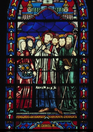 Ensemble de 9 verrières exécutées, avec l'ensemble des vitraux du chevet, par le maître verrier Lobin de Tours en 1878.