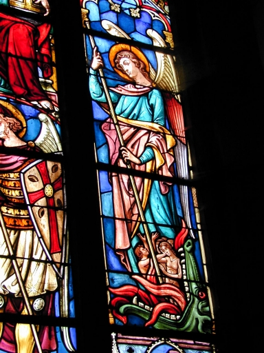 Verrière baie 16 : Iconographie de saint Michel,