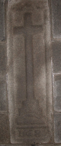 Dalle funéraire 2 : granite : décor dans la masse, décor à fond en cuvette ; 167 l. Date : 1568 ? Représentation : croix sur degrés. Fig. 3.