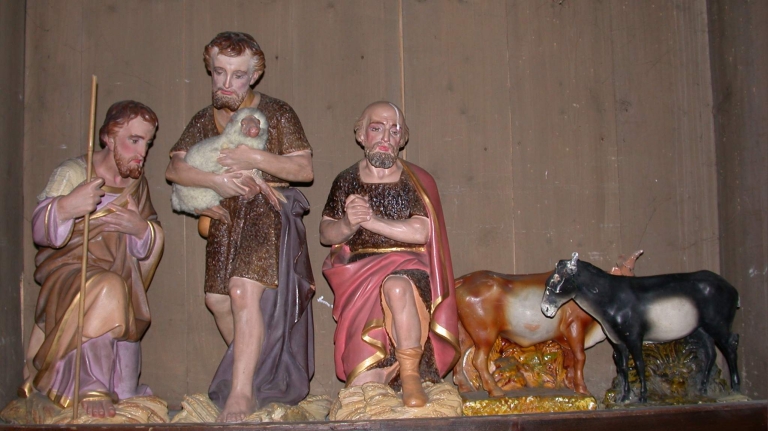 Crèche : plâtre : moulé, peint, polychrome, peint doré ; 60 h. 3e quart 19e siècle. Fig. 8 et 9.