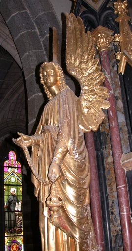 L'ensemble du maître-autel, offert en 1897 par Melle Le Villain, a été réalisé, d'après un modèle d'Arthur Regnault par les marbriers Durand et Texier pour la somme de 32000 F. Les sculptures sont l'oeuvre du Rennais Françis Cottard.