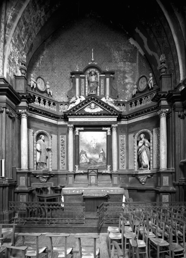 Retable réalisé dans la 2e moitié du 17e siècle, remanié au 19e siècle : l'autel, le tabernacle, les gradins d'autel et le décor peint datent de cette période.