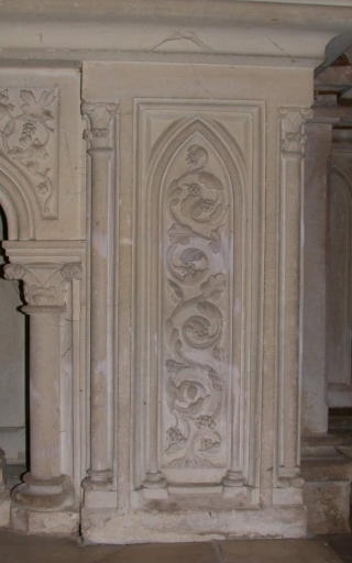 - calcaire, mouluré, tourné, décor en bas relief, décor dans la masse