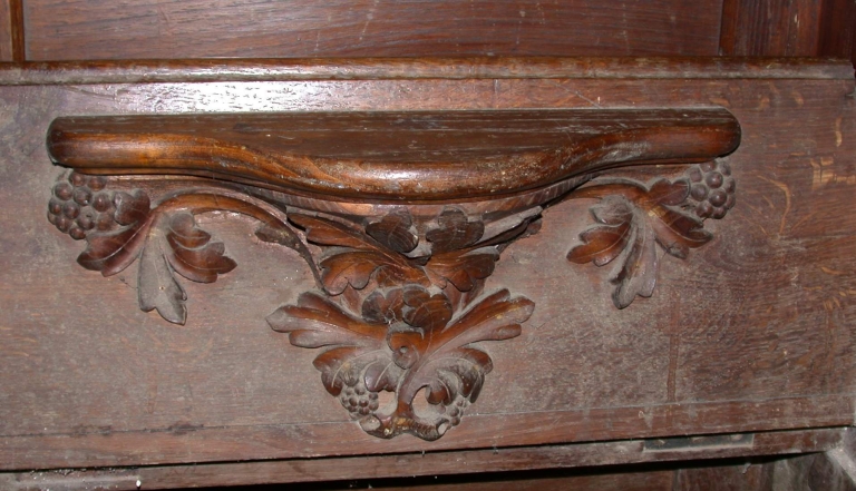 - bois, mouluré, tourné, découpé, teint, vernis, décor en demi relief