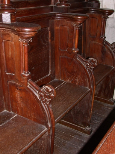 Lambris de revêtement, 2x11 stalles, 2 vantaux, 2x3 agenouilloirs,