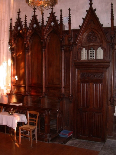Dénominationslambris de revêtement, stalle, vantail, agenouilloir