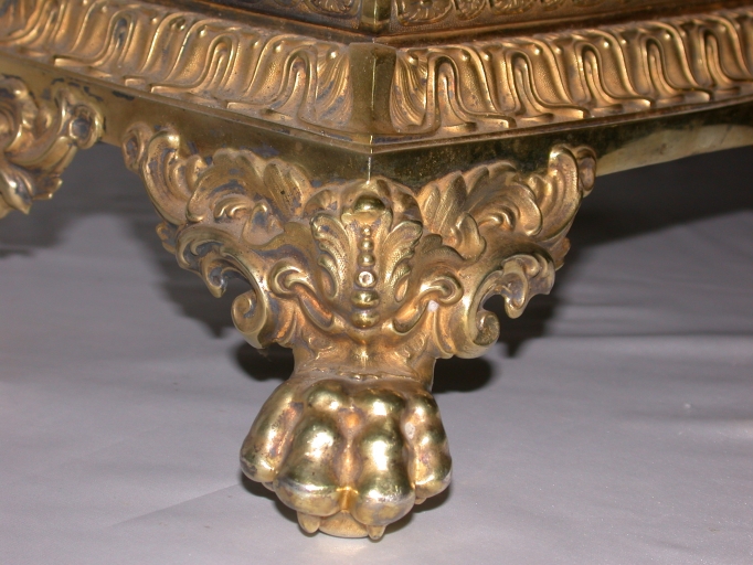 - argent, repoussé, ciselé au trait, ciselé au mat, gravé, doré, fondu