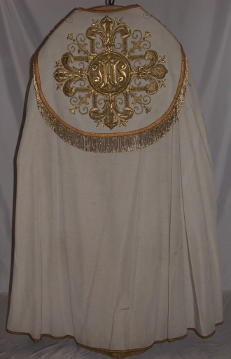 Ornement blanc 1 : chape, chasuble, bourse de corporal, étole, manipule, voile de calice,