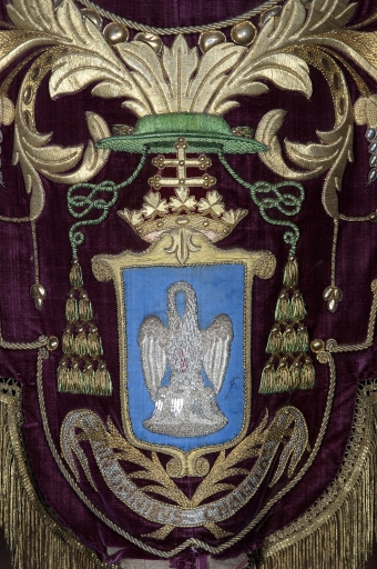 Cette bannière porte les armoiries de l'évêque Brossay Saint-Marc (1841-1878) et celles du pape Pie IX (1846-1878). Elle peut être datée entre 1846 et 1878.