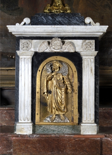 Ensemble du maître-autel : autel, tabernacle, 2 gradins d'autel, 3 degrés d'autel,