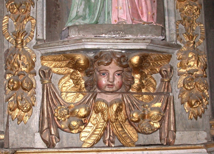 Le retable aurait besoin d'une reprise générale : affaissement vers le mur ; dissociation des panneaux ; fente verticale sous la niche centrale.