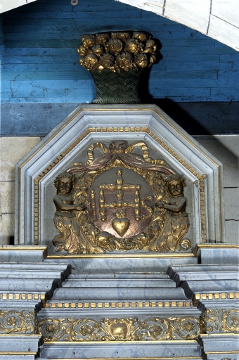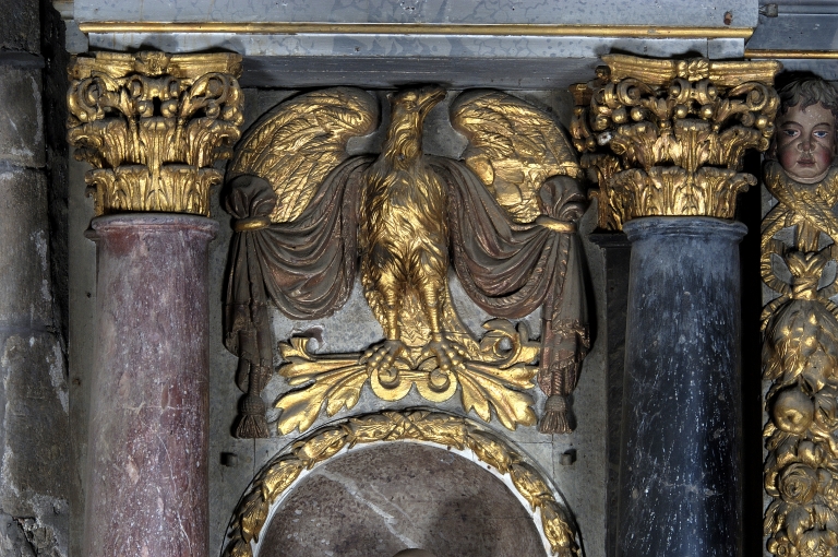 Ensemble de l'autel de la Vierge (autrefois autel de Notre-Dame du Rosaire) : autel, 2 gradins d'autel, degré d'autel,