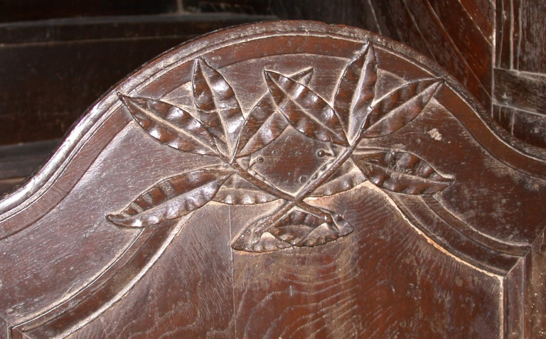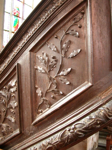 La chaire à prêcher a été fabriquée vers 1700, en remployant vraisemblablement des panneaux plus anciens.
