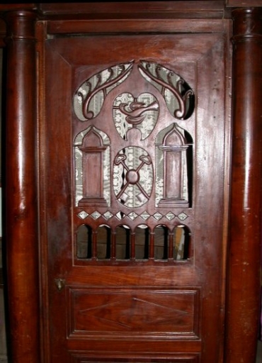 - merisier, mouluré, tourné, ajouré, décor dans la masse, décor en bas relief, vernis