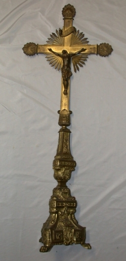 Croix d´autel 1 métal : fondu ; 69 h. Oeuvre déposée. 2e moitié 19e siècle. Représentation : Vierge ; coeurs enflammés ; Christ. Fig. 13.