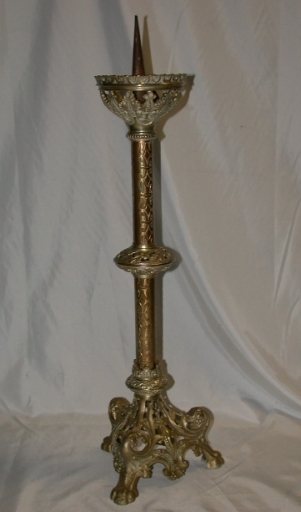 Paire 1 de Chandeliers d´église : métal : fondu, doré. 38 h. Oeuvre déposée. 4e quart 19e siècle. Fig. 12.