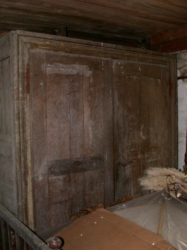 Armoire de sacristie, chasublier et lambris : bois : mouluré, peint, faux bois. L´ensemble présente des traces d´usures. 19e siècle. Fig. 3.