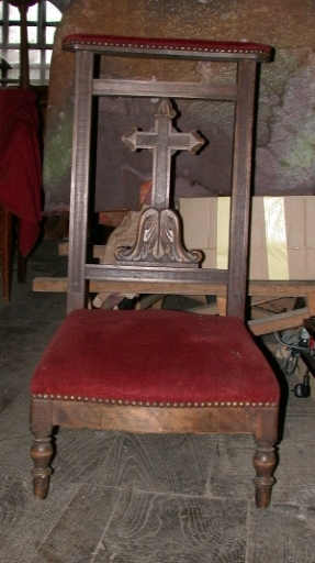 Ensemble de 2 Prie-Dieu : bois : mouluré, découpé, ciré ; soie (rouge) : velours uni ; 88,5 h. Oeuvre déposée. Limite 19e siècle 20e siècle. Fig. 8.