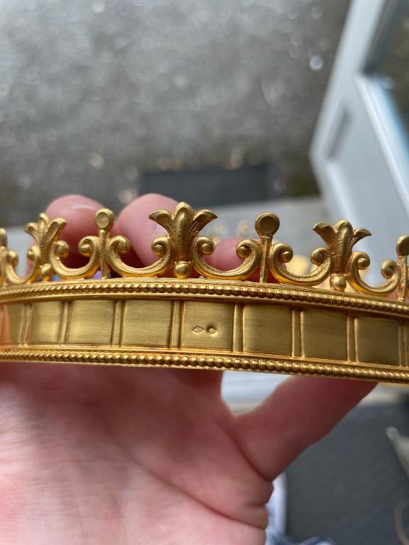 Le poinçon de la garantie, présent également sur les deux couronnes, indique la valeur du métal utilisé. Il s'agit d'une tête d'aigle dans un hexagone. En usage depuis 1919 en France, il indique que l'orfèvre a utilisé de l'or 750 millièmes (18 carats).