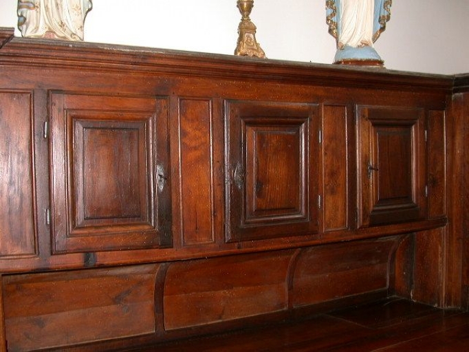 Si la partie haute est du 18e siècle, la partie basse est du 20e siècle. Le vernis est encrassé et il y a quelques attaques actives d'insectes xylophages.