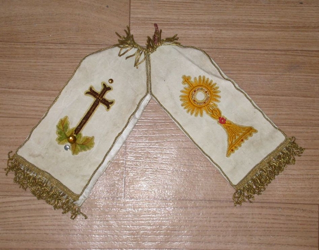 - soie, blanche gros de Tours, brodé, polychrome, application sur textile