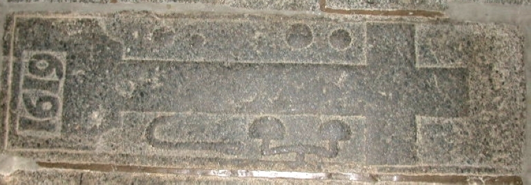 Dalle1 : 1618 ; Dalle 2 : 1591 ; Dalle 3 : 1619 ; Dalle 4 : 1611 ; Dalle 5 : date illisible ; Dalle 6 : 16[ ] ; Dalle 8 : 16[ ] ; Dalle 9 : 16[ ] ; Dalle 10 : 1615. Inscription sur le côté est illisible ; Dalle 12 : A.CLA.