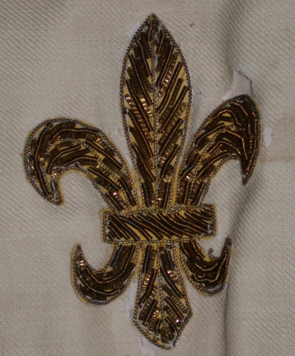 - laine, blanche sergé, application sur textile, adjonction d'éléments