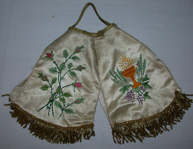 - soie, blanche satin, brodé, polychrome, application sur textile