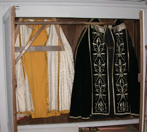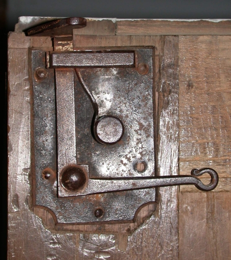 Traces de vermoulure ; il ne reste qu'une barre destinée à suspendre une chape ; les autres ont disparu.